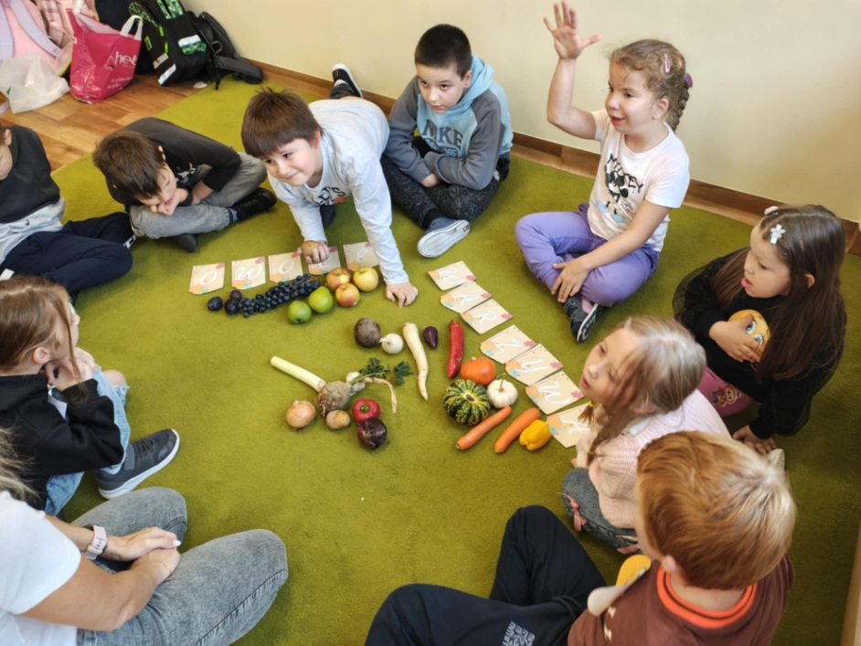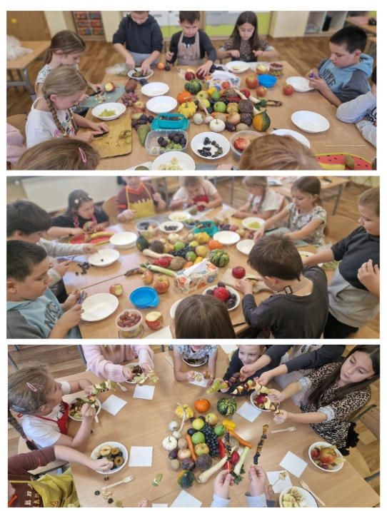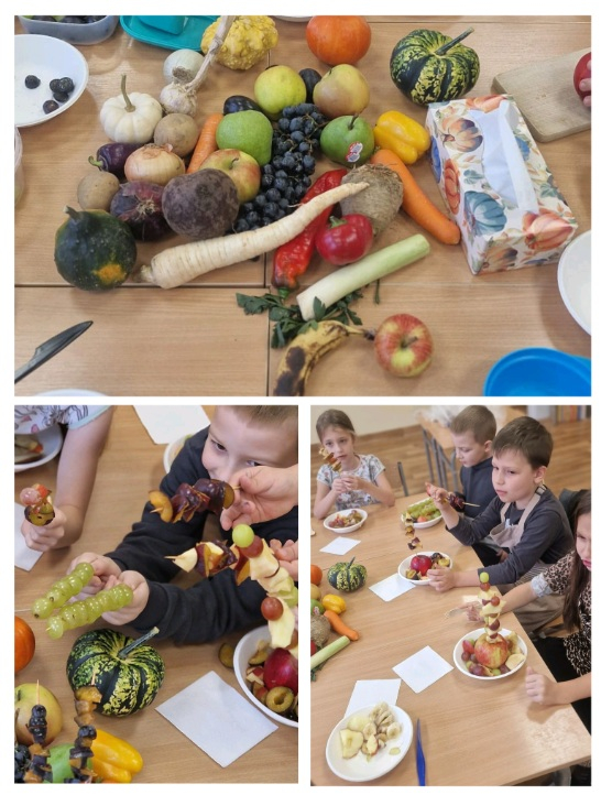 3 października dzieci z klasy 2a rozmawiały o jesiennych darach natury, dzieliły je na kategorie, odgadywały nazwy, później z wielkim zapałem przygotowały jesienne sałatki. Całe zajęcia zakończyły się zdrowym posiłkiem