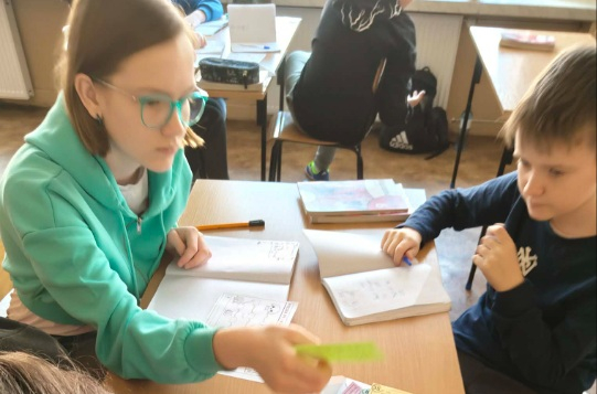 Uczniowie klasy 5a i 6a mieli okazję brać udział w lekcji matematyki dotyczącej jakże znaczącej w matematyce liczbie pi. Uczniowie podzieleni na grupy rozwiązywali zadania, których rozwiązanie ukazywało rozwinięcie dziesiętne stałej znaną również pod nazwą LUDOLFINA.