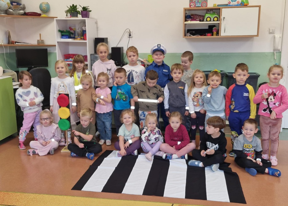 W dniu 27 października 2025 reprezentacja uczniów z klasy 1b pod opieką wychowawców udała się do Przedszkola „Promyczek” w Tarnowie. Pierwszoklasiści przygotowali krótką scenkę dotyczącą bezpieczeństwa na drodze i korzystania z odblasków. Po weekendowej zmianie czasu, za oknami znacznie szybciej robi się ciemno. Uczniowie przypomnieli maluchom, jak bezpiecznie poruszać się po zmroku. Rozdali odblaski, dzięki którym jesteśmy lepiej widoczni w drodze do szkoły i przedszkola. Przedszkolaki miały okazję poćwiczyć bezpieczne przechodzenie przez pasy i korzystanie ze sygnalizatora. Na koniec spotkania wszyscy zrobili sobie wspólne zdjęcie.