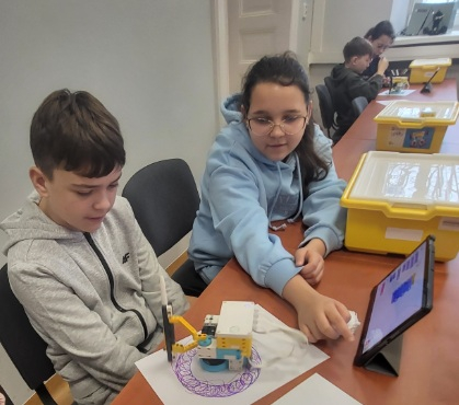Uczniowie klasy piątej wzięli udział w drugiej części zajęć „Programowanie i robotyka z Lego Education Spike Prime”, zorganizowanych przez Biblioteka Pedagogiczna w Tarnowie.