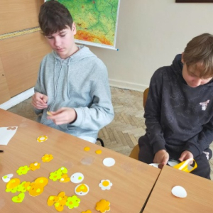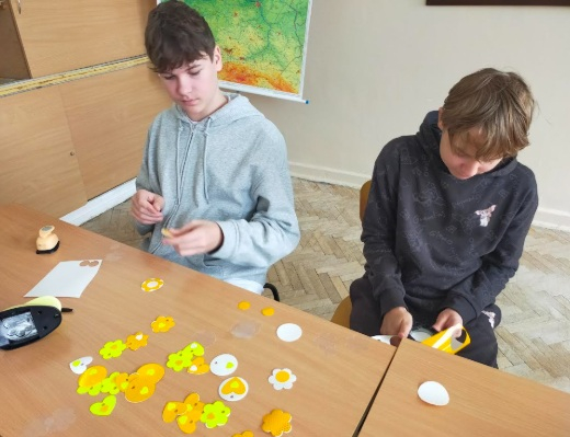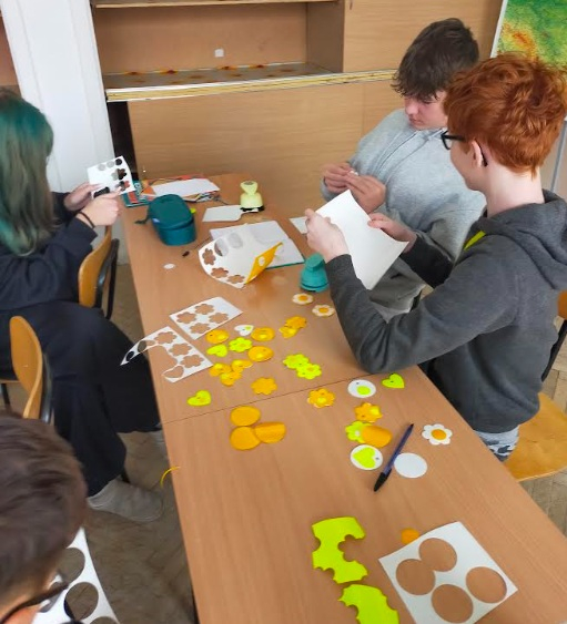 Podczas zajęć z wychowawcą oraz w wolnym czasie, uczniowie z klasy 8b zaprojektowali i wykonali elementy odblaskowe, które będą rozdawać podczas „Odblaskowego marszu”.