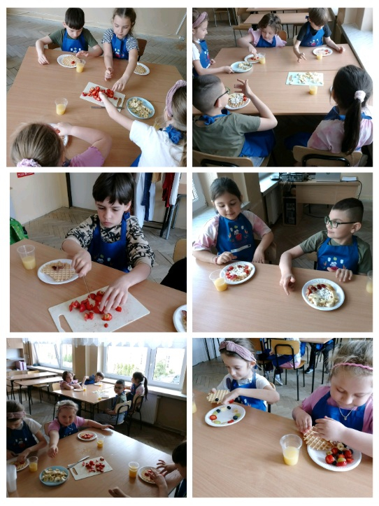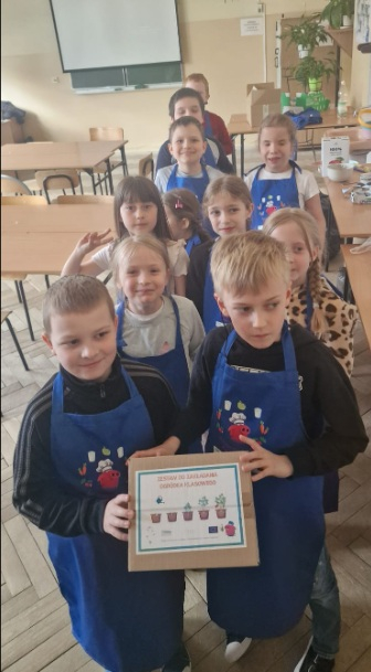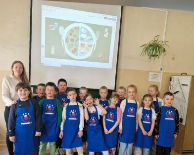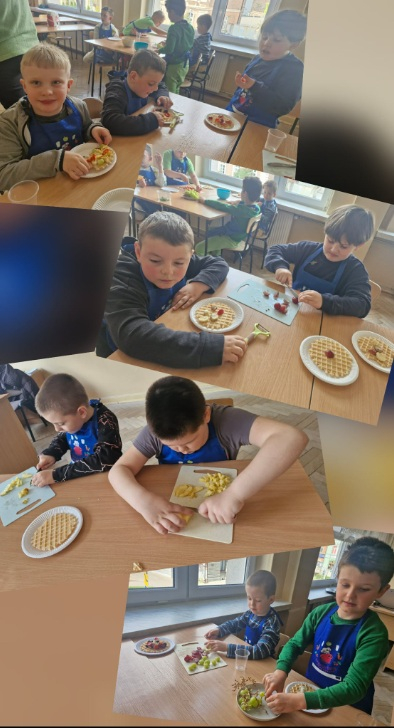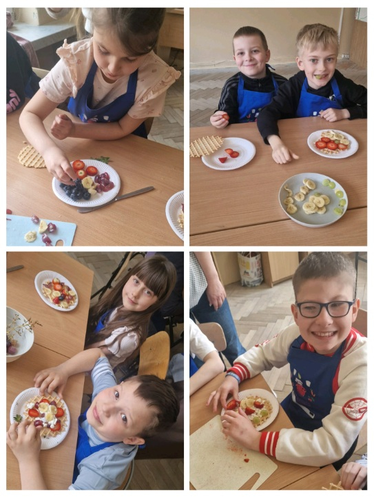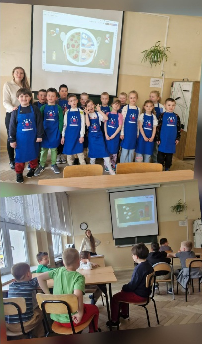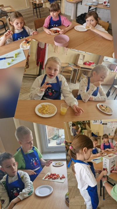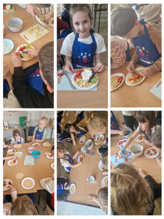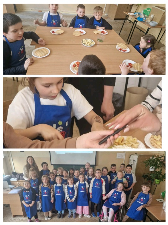 Dzieci przygotowywały zdrowe i pomysłowe przekąski pod okiem pani dietetyk, ucząc się, jak komponować wartościowe posiłki na co dzień. Powstałe potrawy nie tylko pięknie wyglądały, ale także wspierają prawidłową pracę mózgu i koncentrację. Na koniec uczniowie dostali niebieskie fartuszki oraz zestawy do zakładania ogródków na parapetach w salach lekcyjnych.