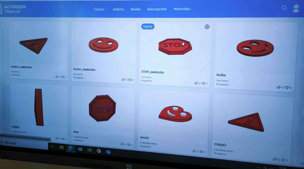 Uczniowie klasy szóstej w ramach Odblaskowej szkoły wykonali na lekcji informatyki swoje pierwsze projekty odblasków 3D, które zostaną wykorzystane do nagrodzenia kierowców podczas „Odblaskowego patrolu”. Na zajęciach mieli okazję dokładnie obejrzeć drukarkę 3D, poznać jej budowę, najważniejsze elementy oraz zasadę działania.