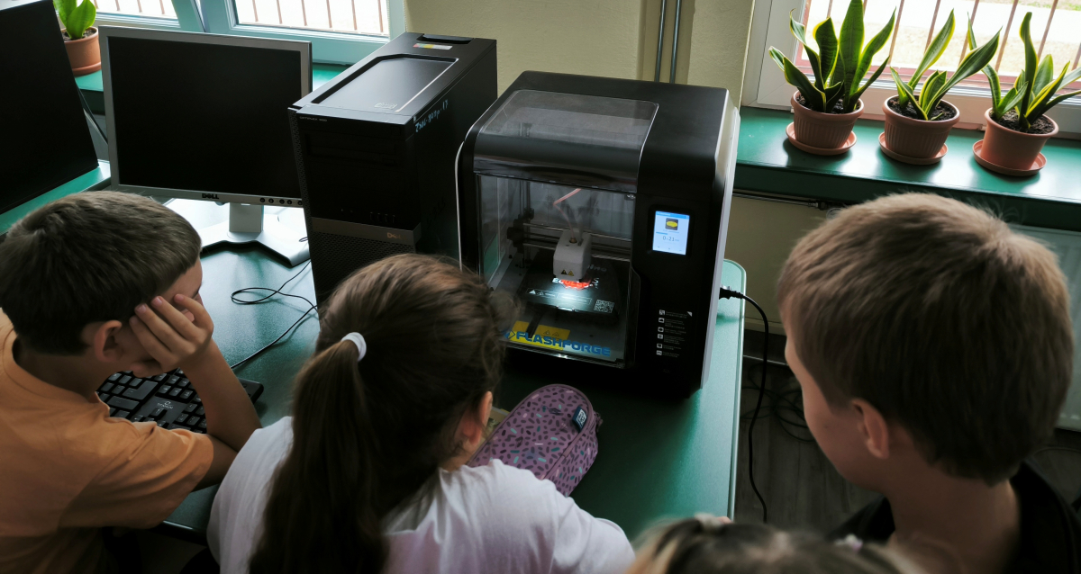 Drukarka 3D jest częścią wyposażenia, jakie otrzymała nasza szkoła w ramach programu „Laboratoria przyszłości”, którego celem jest budowanie kompetencji kreatywnych i technicznych wśród uczniów.