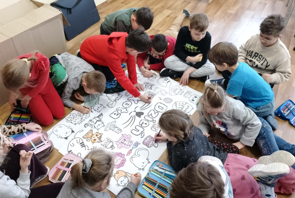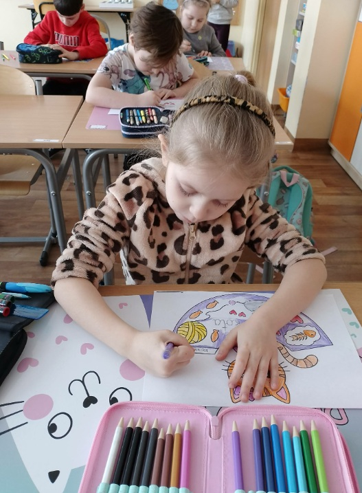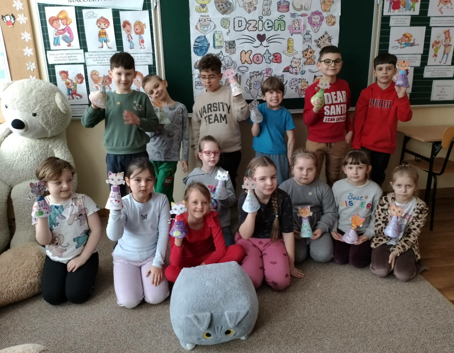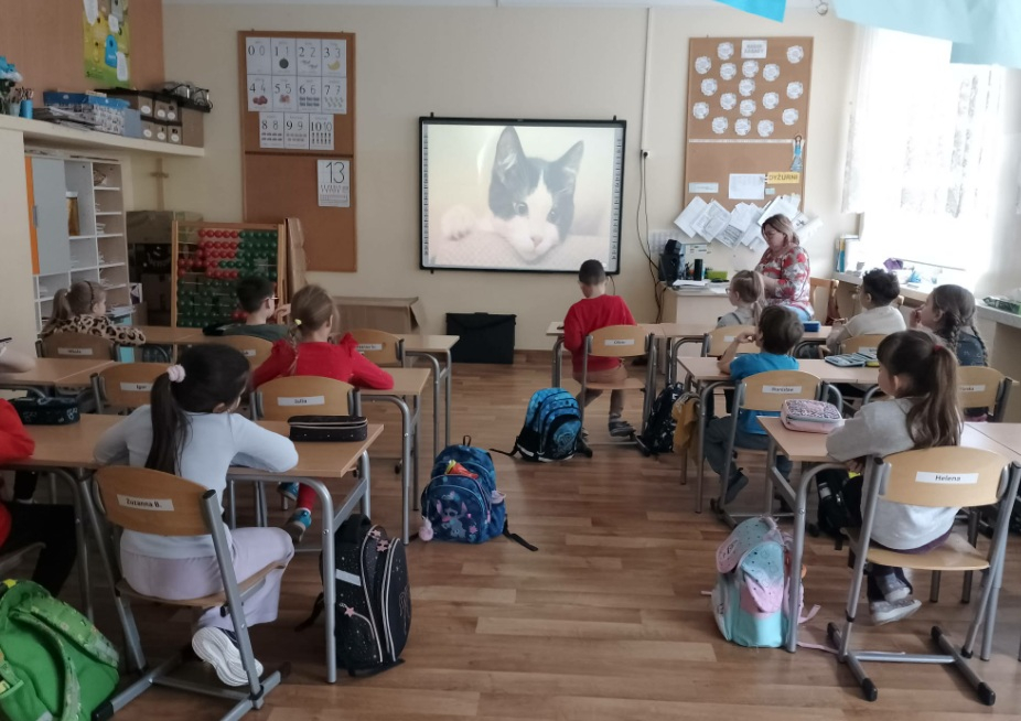 Z filmu edukacyjnego uczniowie dowiedzieli się o pochodzeniu kota, poznali rasy kotów oraz różne ciekawostki dotyczące życia kotów, następnie wykonali piękny plakat oraz pracę plastyczną Koty.