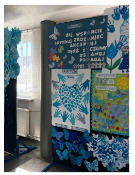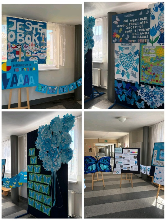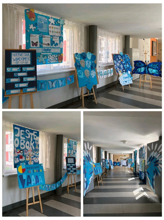 Uczniowie klas 1–3 przygotowali wspaniałą wystawę prac plastycznych oraz plakaty informacyjne dotyczące autyzmu.