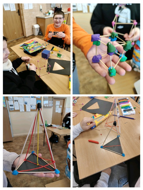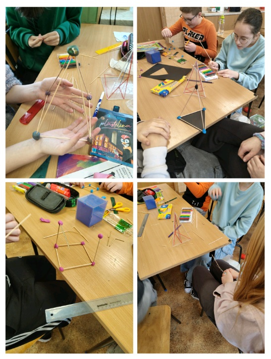 Zajęcia kreatywne w klasie 6a to czas, kiedy uruchamiamy wszelką kreatywność i poprzez zabawę, zajęcia manualne a przede wszystkim pracując w grupach powstają ciekawe pomoce dydaktyczne. Tym razem na celowniku stanęły szkielety figur przestrzennych wykonane z plasteliny i wykałaczek.